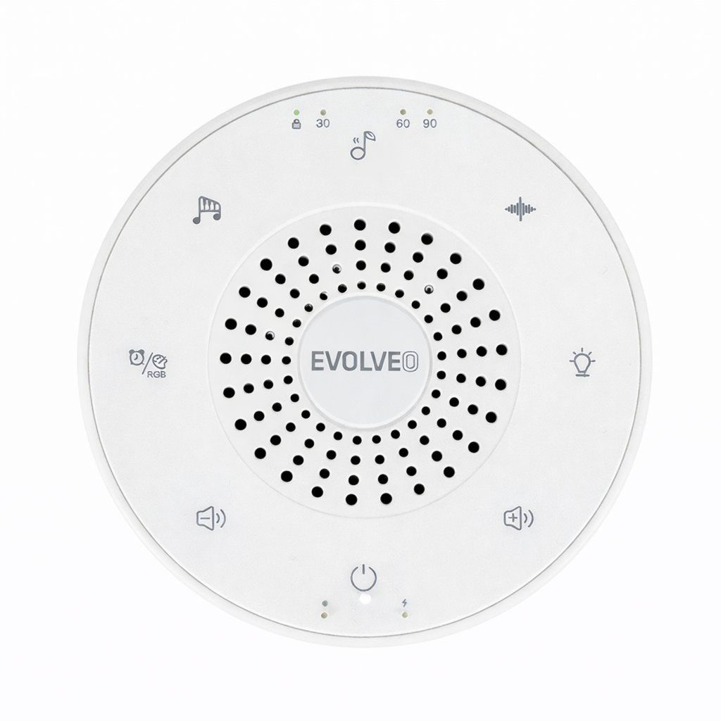.EVOLVEO Nubiloo – altató modul fehér zajjal, altatódalokkal és színes fényjelzéssel a jó éjszakát kívánva