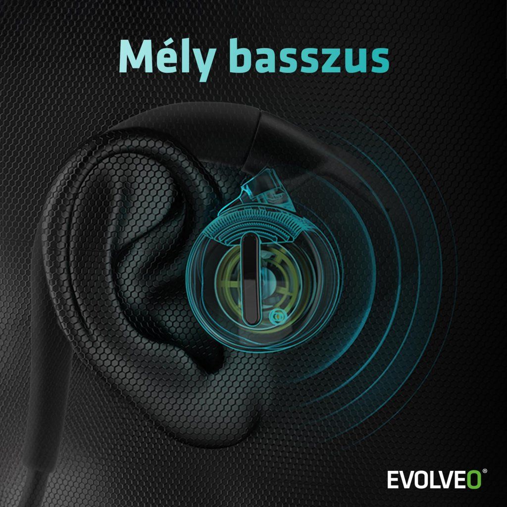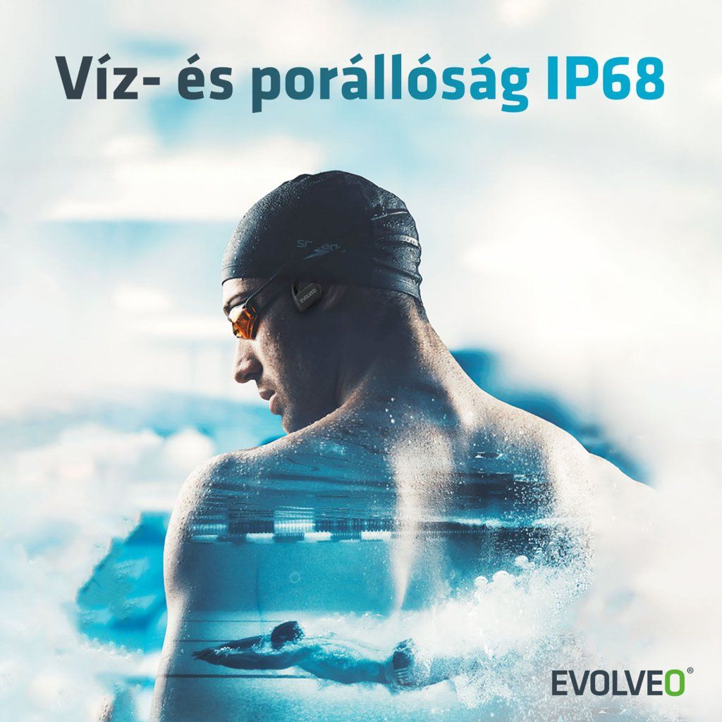 - Ideális választás sportolóknak – akár a parkban fut, kerékpárral megy dolgozni, vagy vízi élvezeteknek hódol, az EVOLVEO BonePro lehetővé teszi, hogy egyszerre hallja a külvilágot és a kedvenc zenéjét.