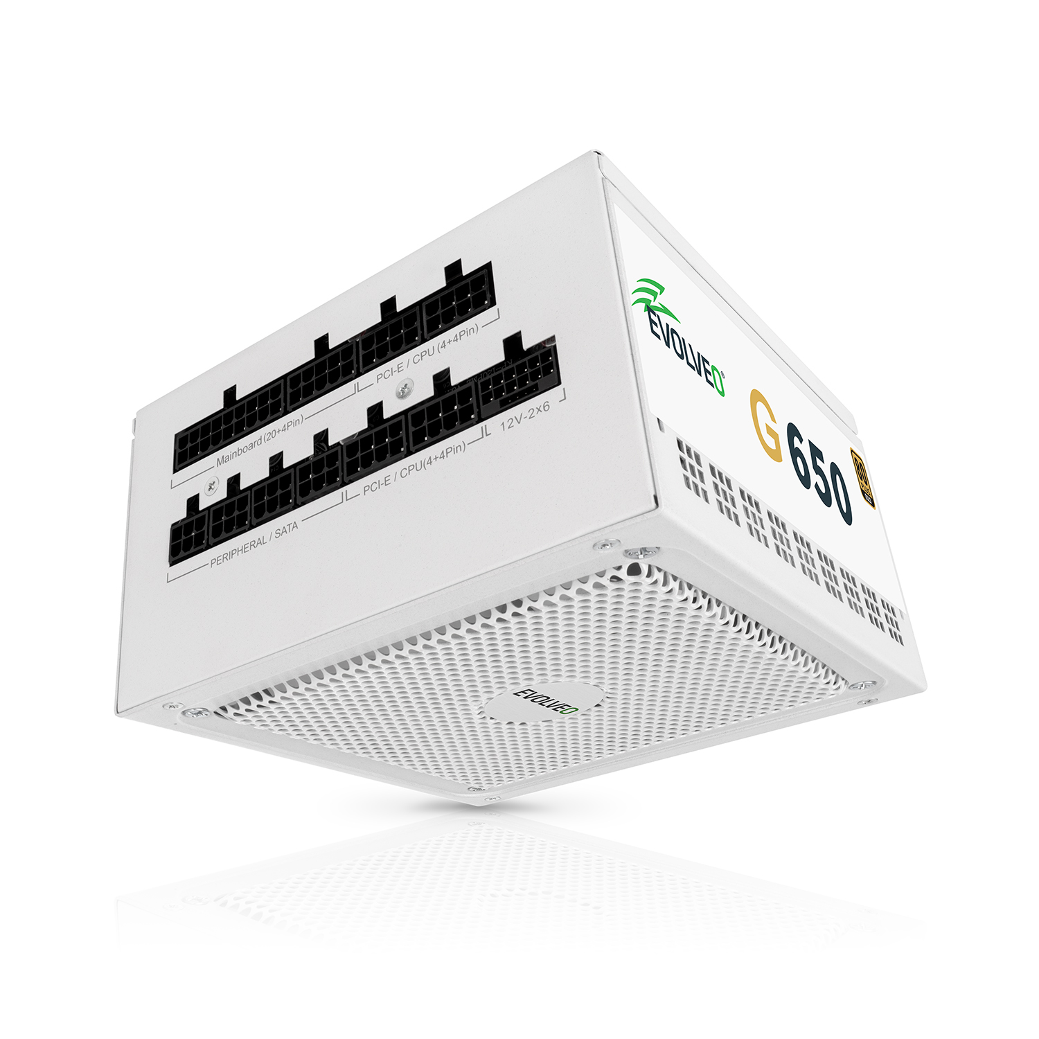 EVOLVEO G650 tápegység 650 W, 80+ GOLD, ATX 3.1, aPFC, 140 mm ventilátor, 3 év garancia, fehér