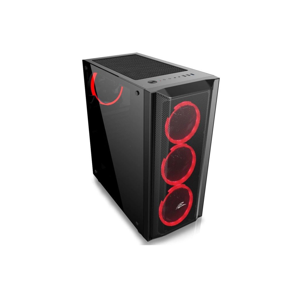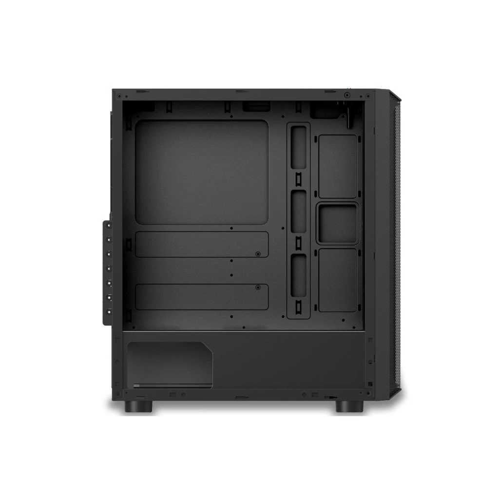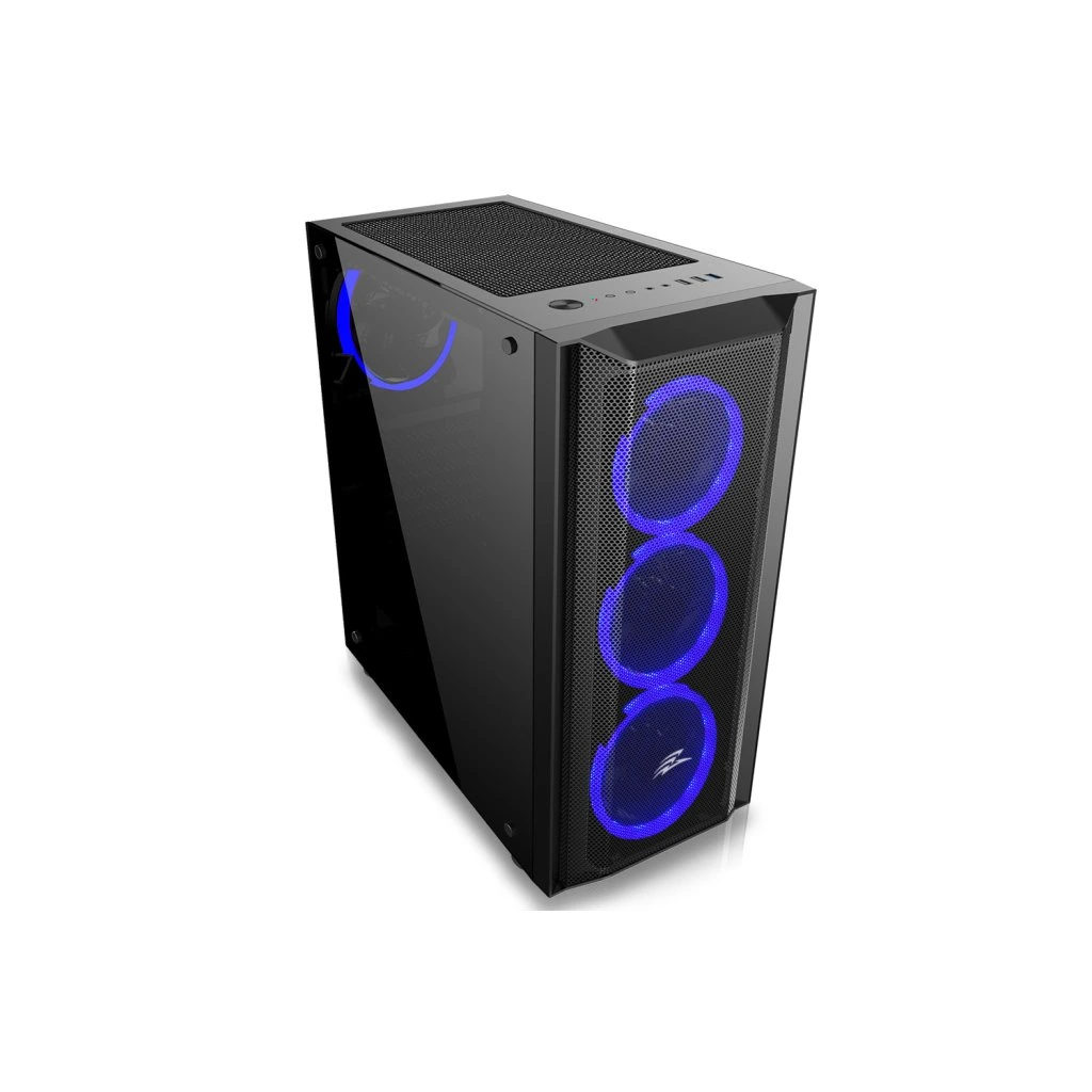 Gaming ATX midi tower számítógépes ház beépített 4x ARGB rainbow 120 mm-es ventilátorral, melyeket a kezelőpanel tetején található LED gomb vezérel. Az előlapon található rács biztosítja az effektív légáramlást. A számítógépház bal oldalát edzett üvegből készült fal borítja. A ház az Intel, és az AMD platformokat támogató alaplapokhoz készült. Az ATX formátum mellett kompatibilis a Micro ATX és a Mini ITX formátummal is. Az tápegység a szekrény alsó részében helyezhető el. Az alsó rács kihúzható porszűrővel van ellátva, a felső porszűrő mágnesekkel van rögzítve és kivehető. Ventilátorok 4 pin-es MOLEX tápegységgel, vezérlő nélkül kell őket egymáshoz csatlakoztatni. A ventilátorok vezérlése csak a szekrény kezelőpaneljén található LED gomb segítségével lehetséges.