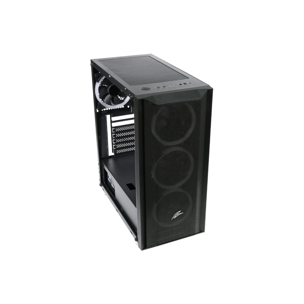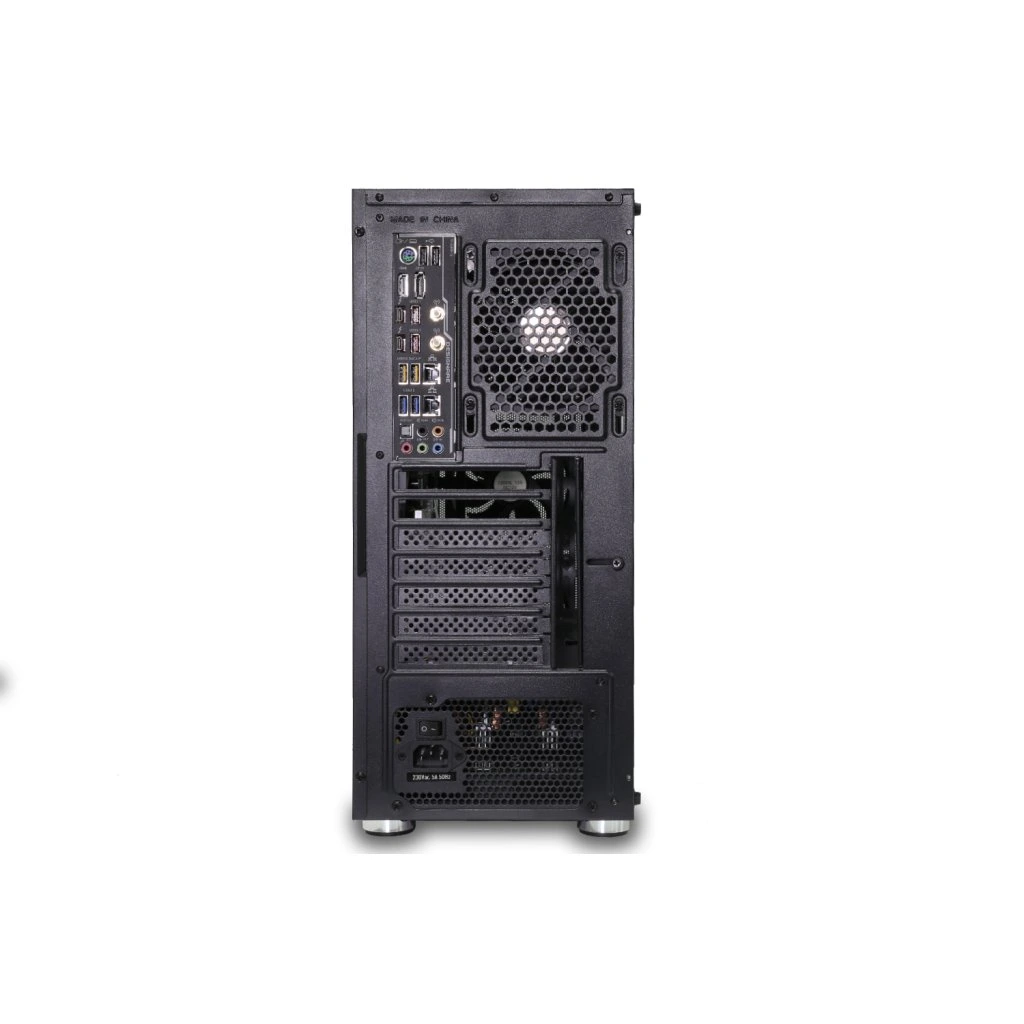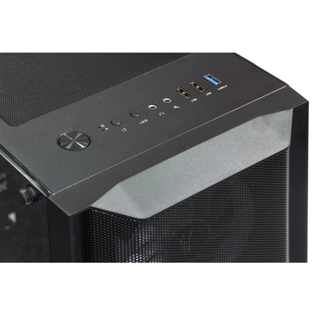 Gaming ATX midi tower számítógépes ház beépített 4x ARGB rainbow 120 mm-es ventilátorral, melyeket a kezelőpanel tetején található LED gomb vezérel. Az előlapon található rács biztosítja az effektív légáramlást. A számítógépház bal oldalát edzett üvegből készült fal borítja. A ház az Intel, és az AMD platformokat támogató alaplapokhoz készült. Az ATX formátum mellett kompatibilis a Micro ATX és a Mini ITX formátummal is. Az tápegység a szekrény alsó részében helyezhető el. Az alsó rács kihúzható porszűrővel van ellátva, a felső porszűrő mágnesekkel van rögzítve és kivehető. Ventilátorok 4 pin-es MOLEX tápegységgel, vezérlő nélkül kell őket egymáshoz csatlakoztatni. A ventilátorok vezérlése csak a szekrény kezelőpaneljén található LED gomb segítségével lehetséges.