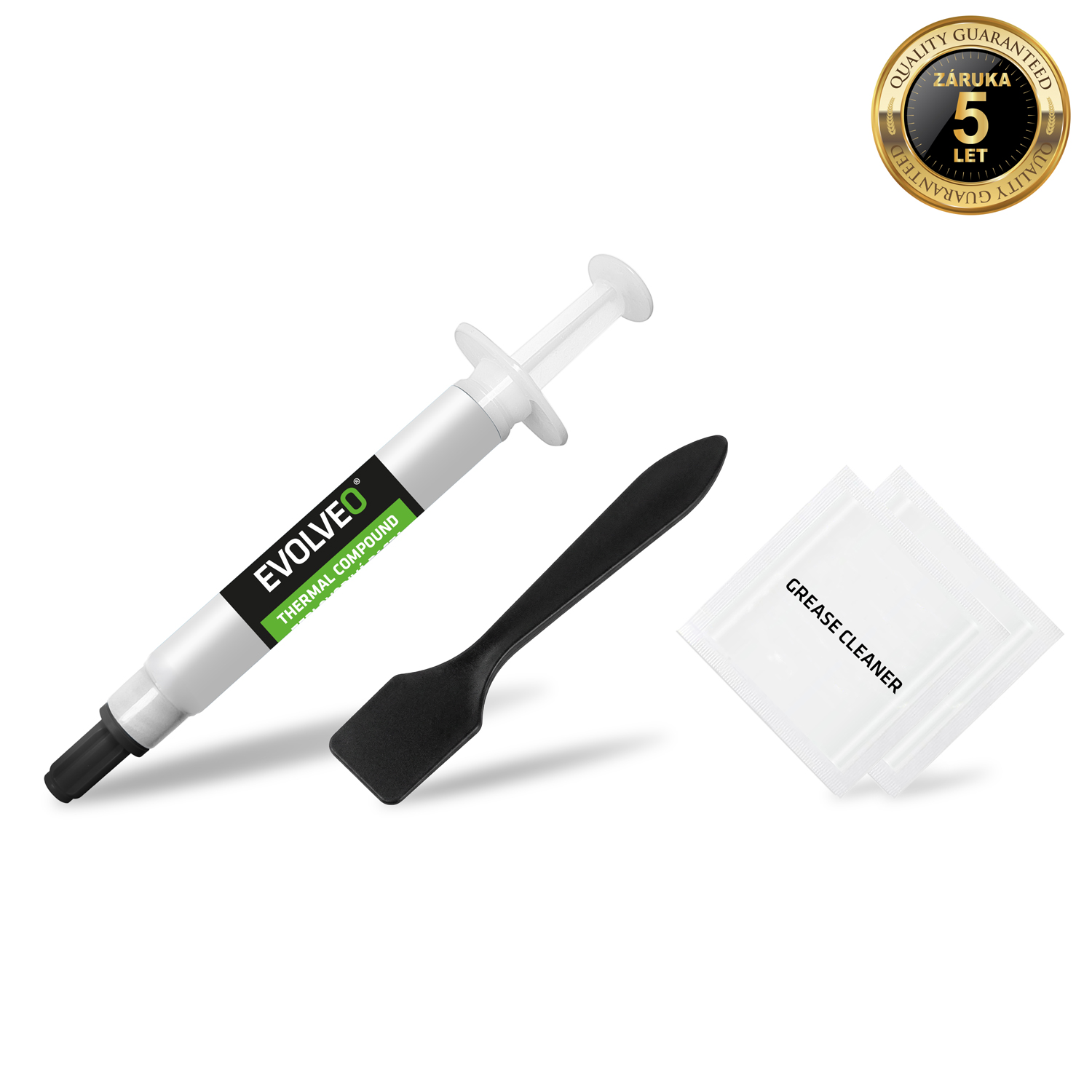 Az EVOLVEO Ptero TC3 egy olyan paszta, amely a processzor vagy a grafikus kártya hőmérsékletét ésszerű határokon belül tartja, még akkor is, ha a számítógép a legnagyobb teljesítményen fut. Még hosszú játékmaratonok vagy igényes grafikai munka során is. Ideális kémiai tulajdonságokkal rendelkezik és alkalmazása rendkívül egyszerű – majdnem olyan, mintha fogkrémet kennél a fogkefédre. Ez egy feltűnésmentes és könnyen használható kütyü, amely életre keltheti a PC konfigurációdat.